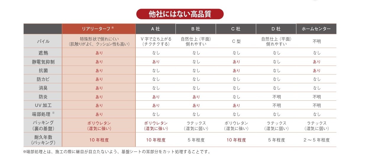 C型パイルを使用した高密度な人工芝となっており幼稚園や公園等に使用されていいる耐久性にも安全性にも優れたプロが愛用する人工芝。高密度・高耐久のハイグレードな人工芝を期間限定の特別価格でご提供します!