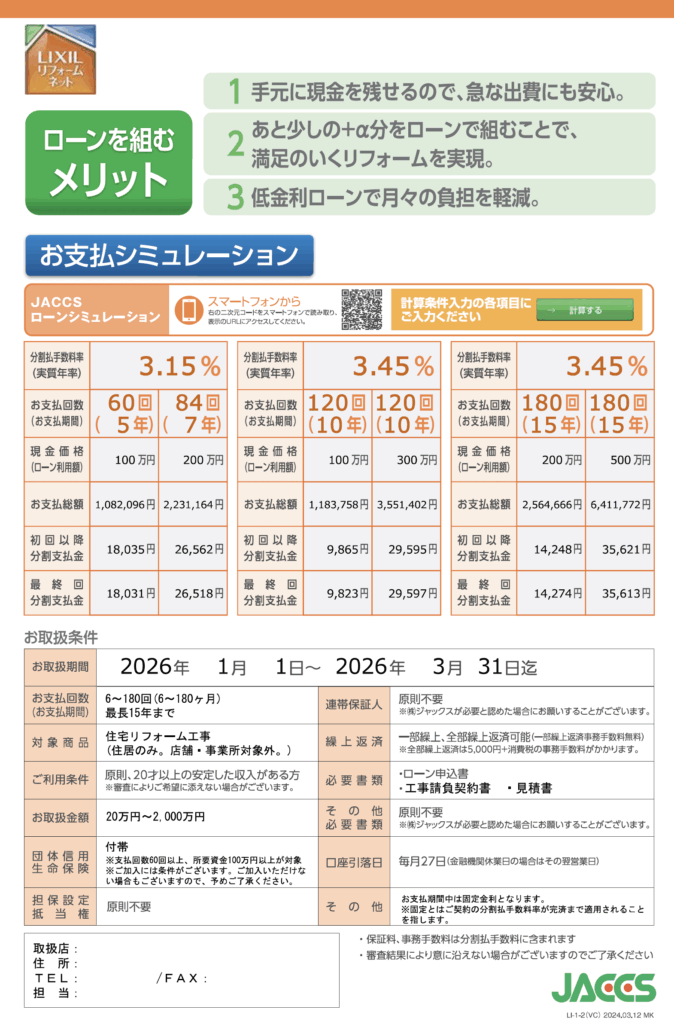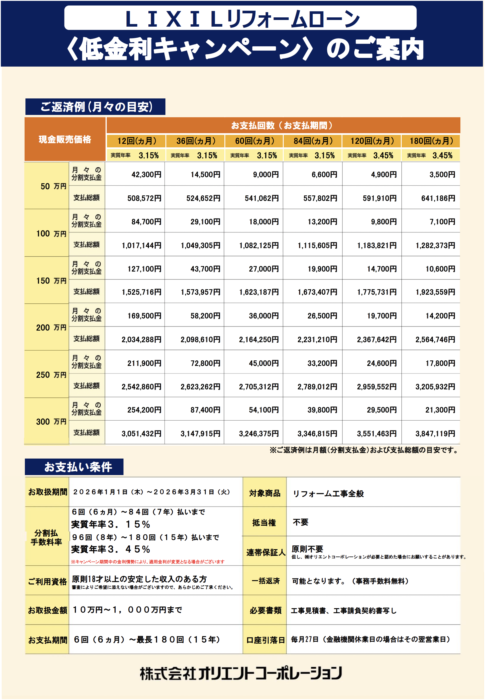 お支払いは6回~180回(6カ月~15年)まで対応。