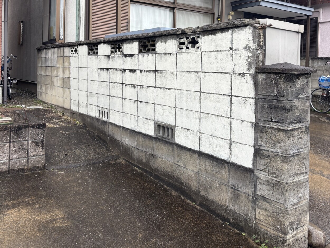 倒壊の恐れがあった古いブロック塀も撤去して新しいブロックに積み直し、メッシュフェンスを設置しています。
