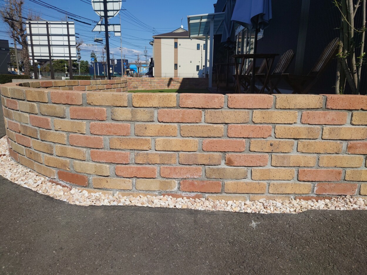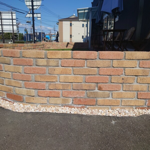 朽ちて危険な状態だった木杭の柵を撤去し、丈夫で安全なレンガ積みでやり替えました。