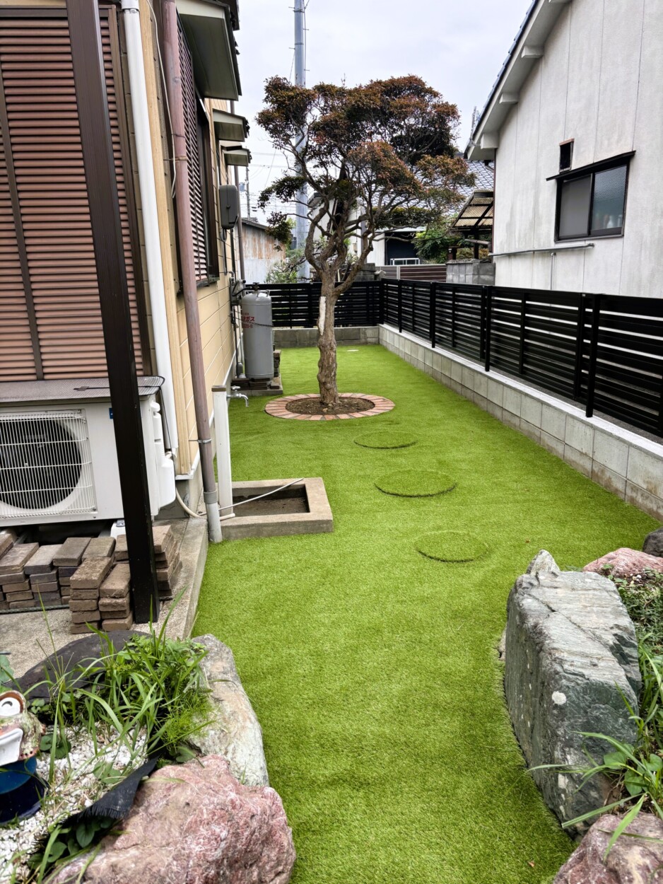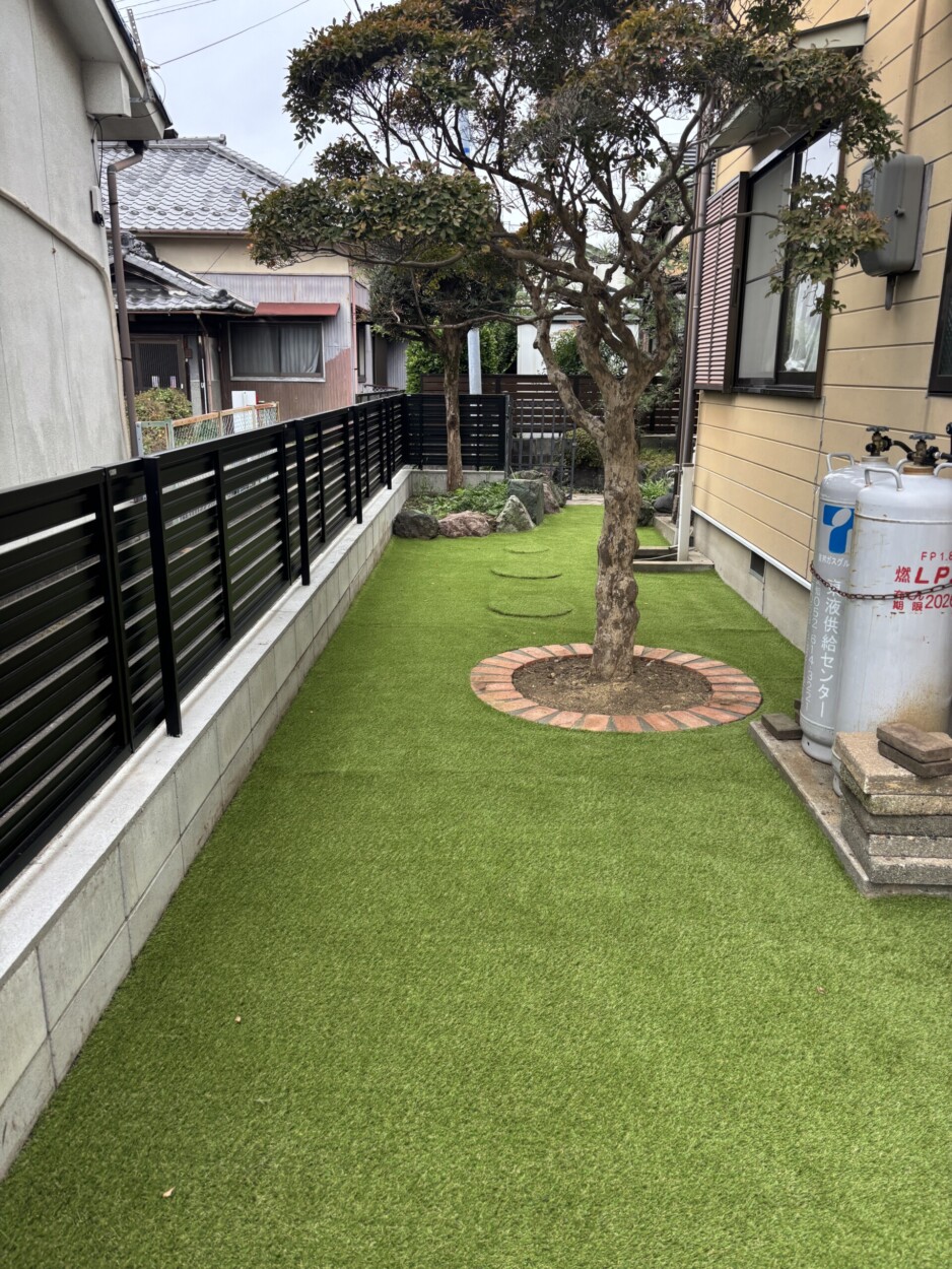 お庭のリフォーム|雑草対策とドッグラン用の人工芝敷き|犬山市