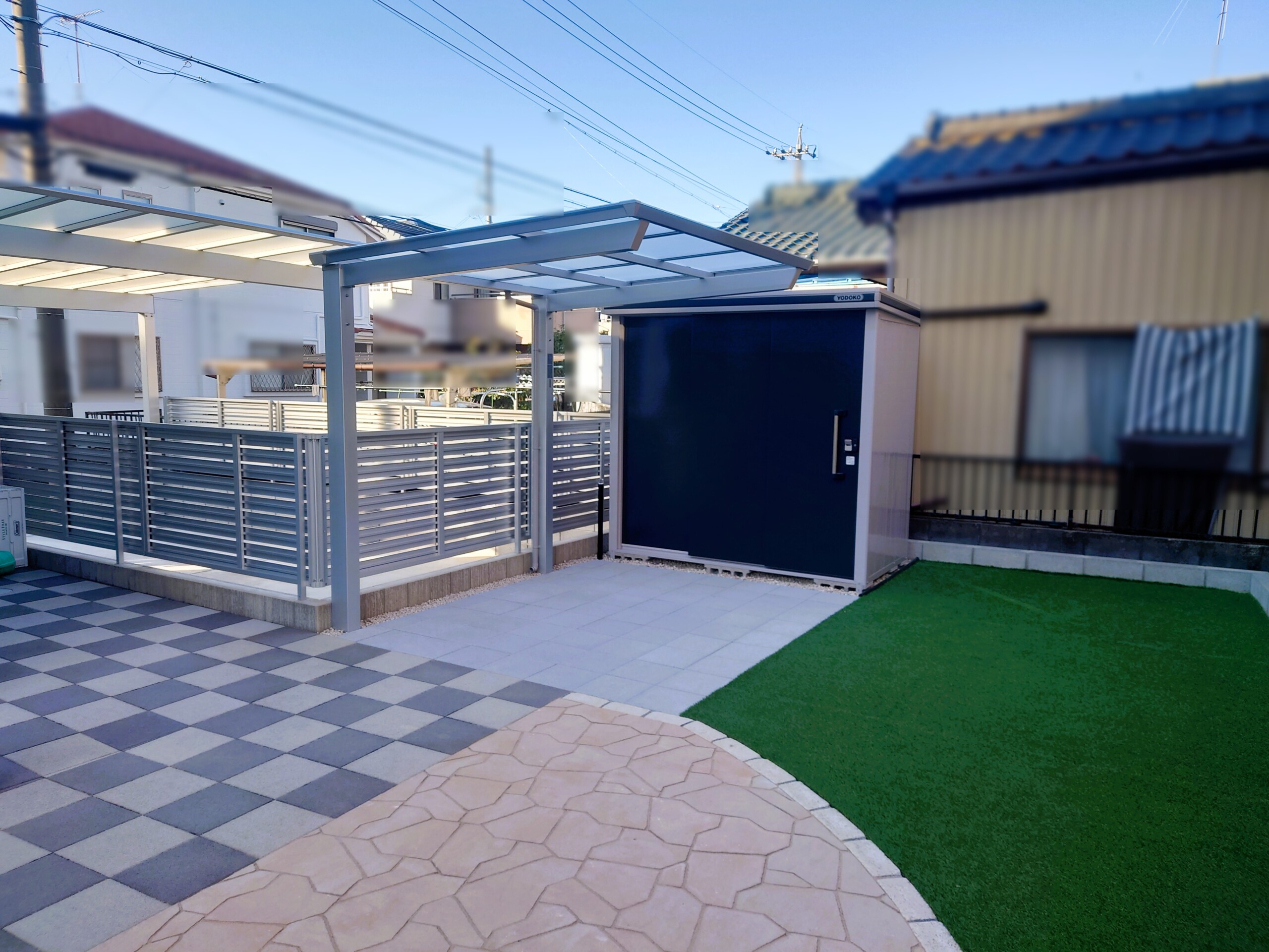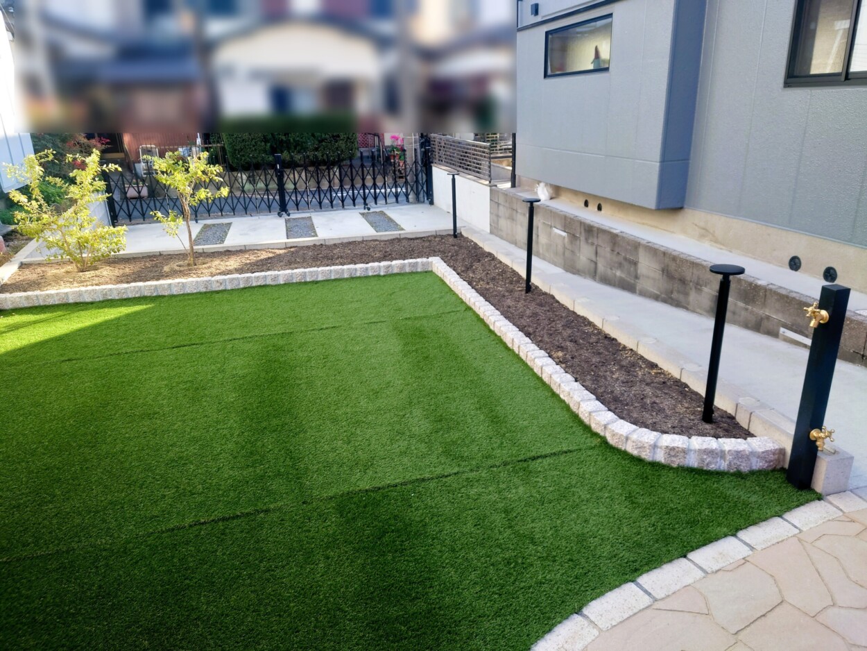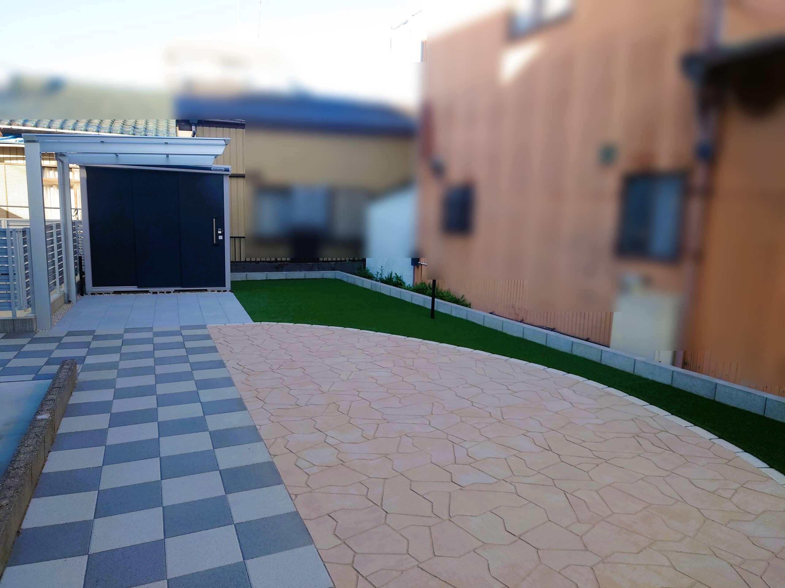 お庭の管理が楽になる庭リフォーム工事 人工芝・透水平板|大治町