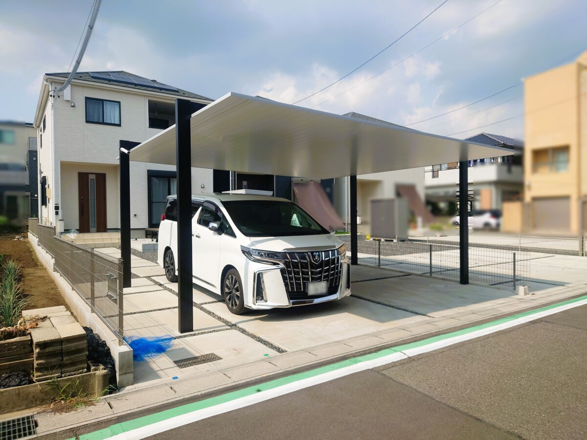 片側支持でおしゃれな2台用のカーポートSCの取付工事の施工例|江南市