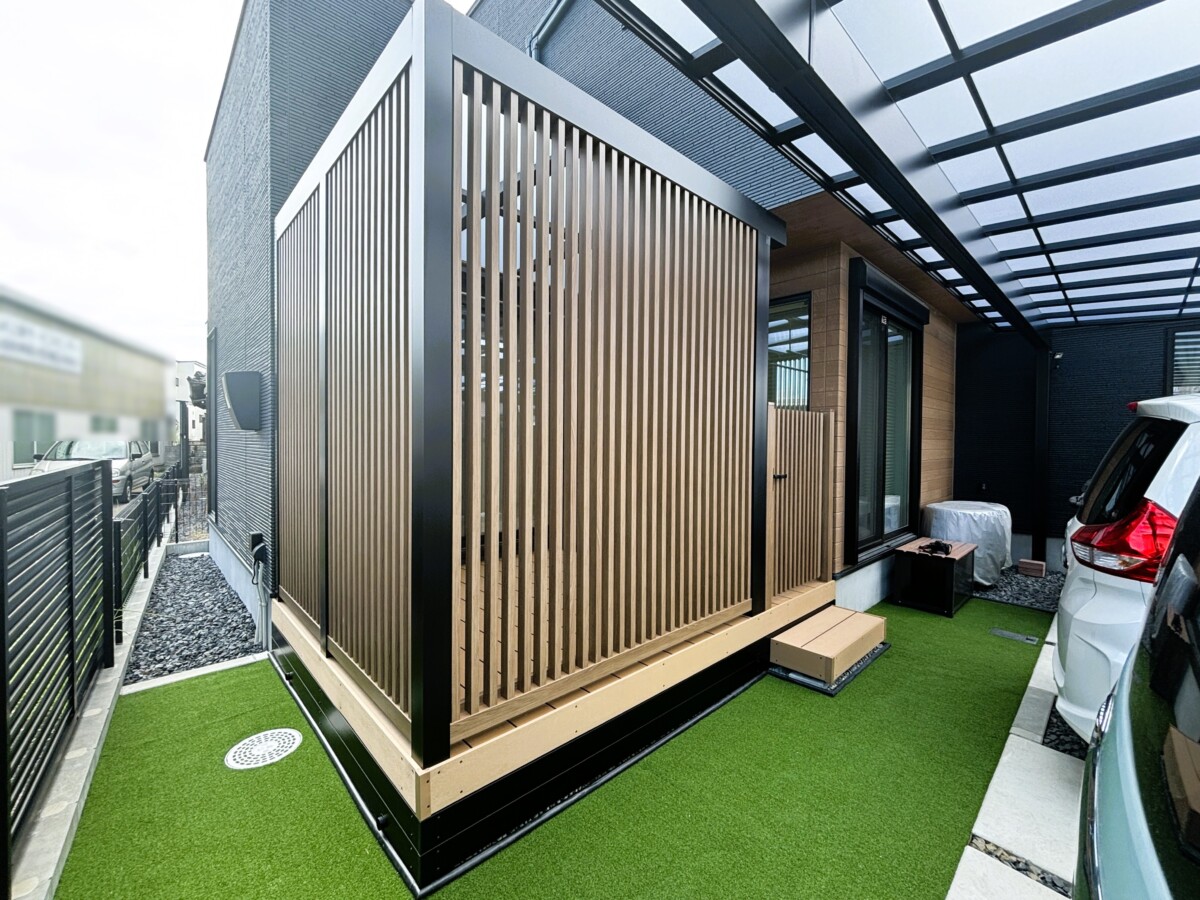 ナチュラルでおしゃれな木目調のサイクルポート|扶桑町