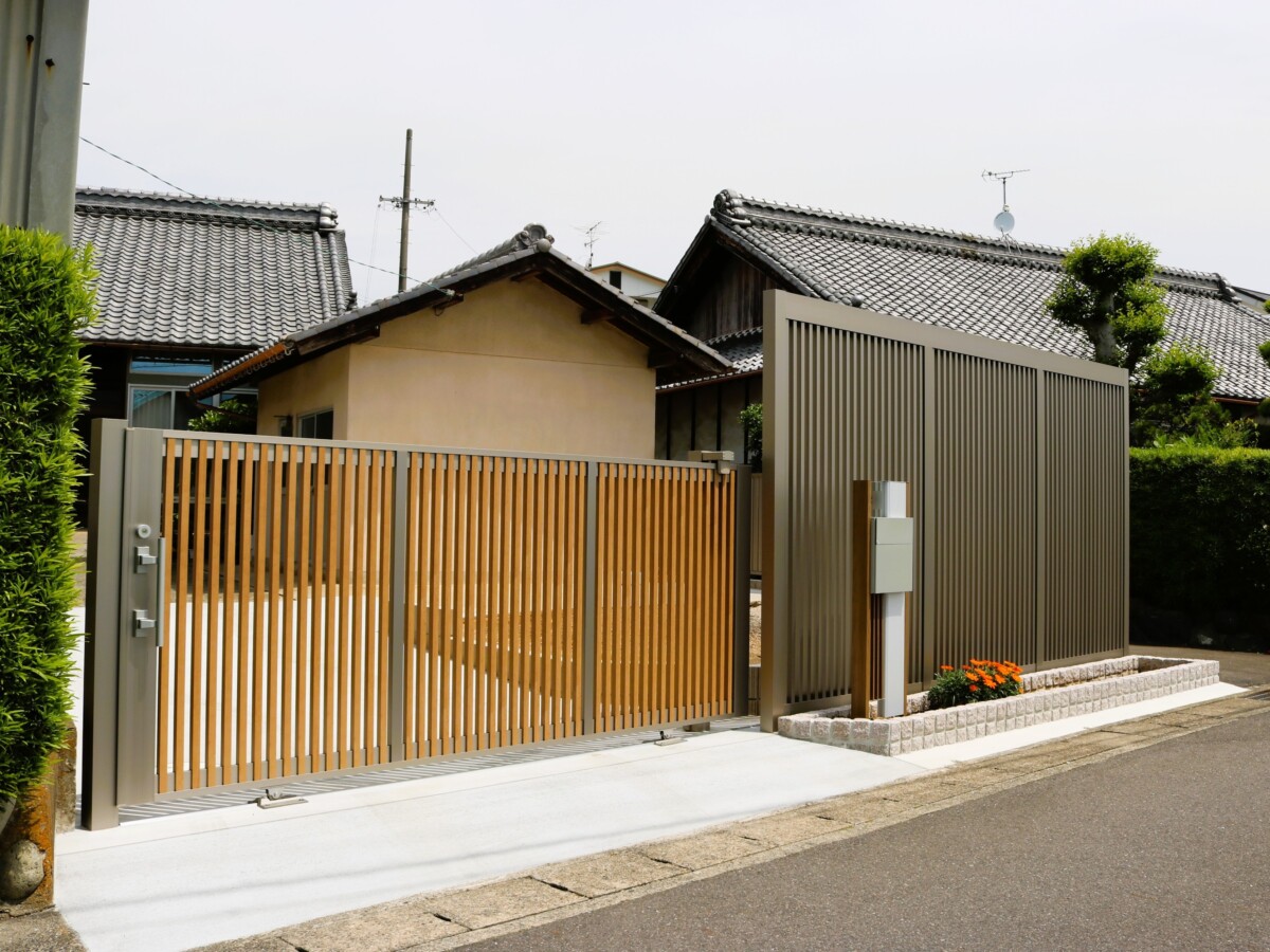 防犯効果の高いおしゃれなカーゲートと駐車場と門廻りのリフォーム工事の施工例|おしゃれな木目のカーゲート|江南市