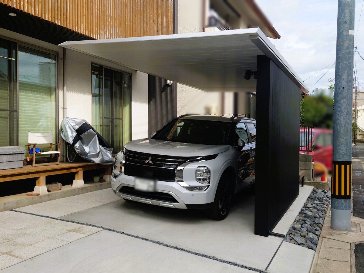 目隠しや収納を兼ねたサイドスクリーン付カーポートFⅡと駐車スペース拡張工事|あま市