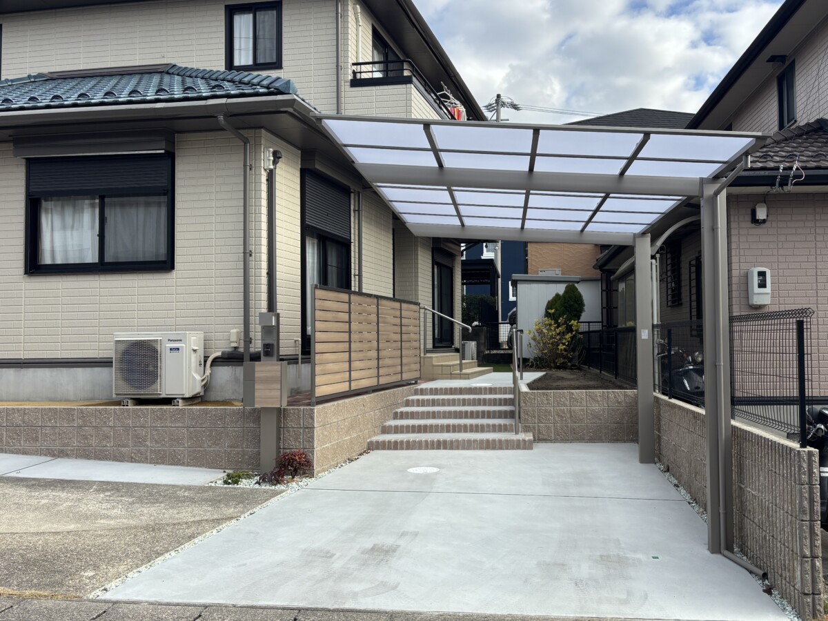 側面支持で駐車が楽でかっこいいカーポートの設置と駐車スペースの拡張工事の施工例|大口町