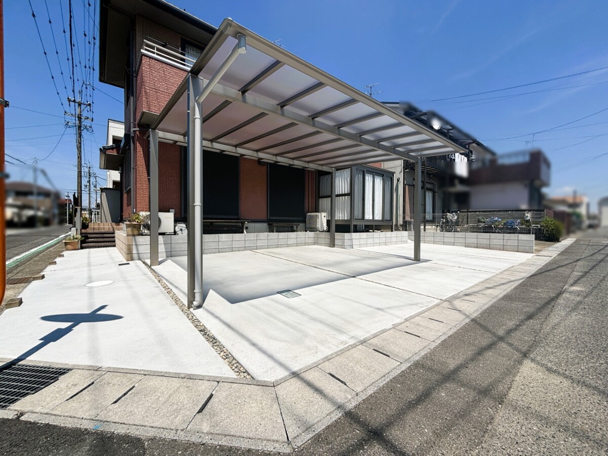 シンプルモダンでおしゃれなカーポートのある新築外構工事の施工例|名古屋市西区